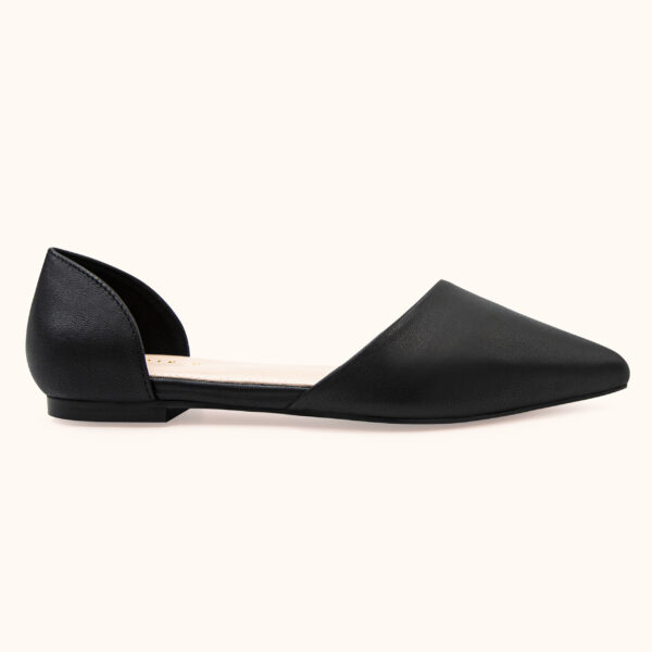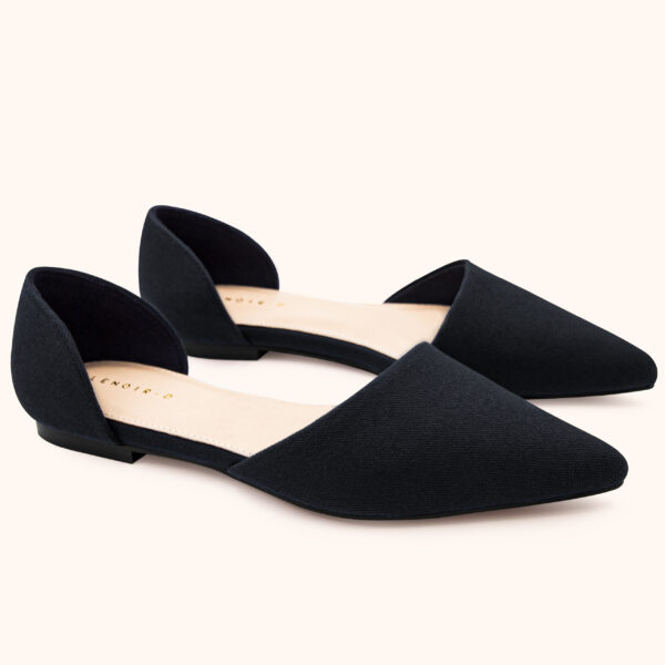 GIÀY BÚP BÊ MŨI NHỌN HỞ HAI MANG – BST ELENOIR -D CAO CẤP CỦA DOLLY – CHẤT LIỆU DA BÒ Ý MÃ 88039 MÀU ĐEN LÌ BLACK MATTE