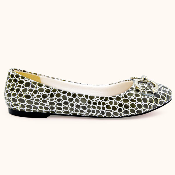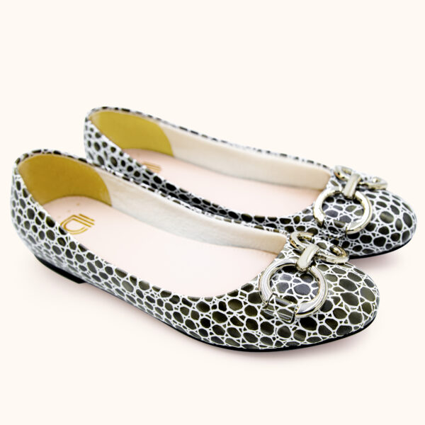 GIÀY BÚP BÊ MŨI TRÒN KHÓA TRANG TRÍ DA BÒ Ý DẬP VÂN HỌA TIẾT – BST ELENOIR -D CAO CẤP CỦA DOLLY MÃ 88005 MÀU XÁM GRAY