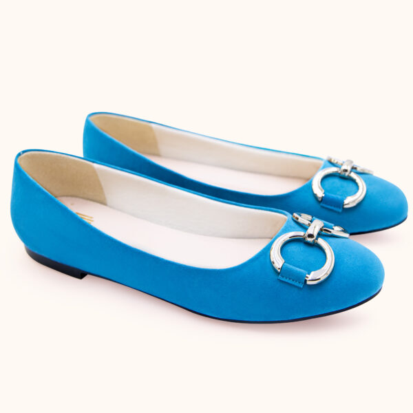 GIÀY BÚP BÊ MŨI TRÒN KHÓA TRANG TRÍ DA BÒ Ý – BST ELENOIR -D CAO CẤP CỦA DOLLY MÃ 88005 MÀU XANH DƯƠNG BLUE