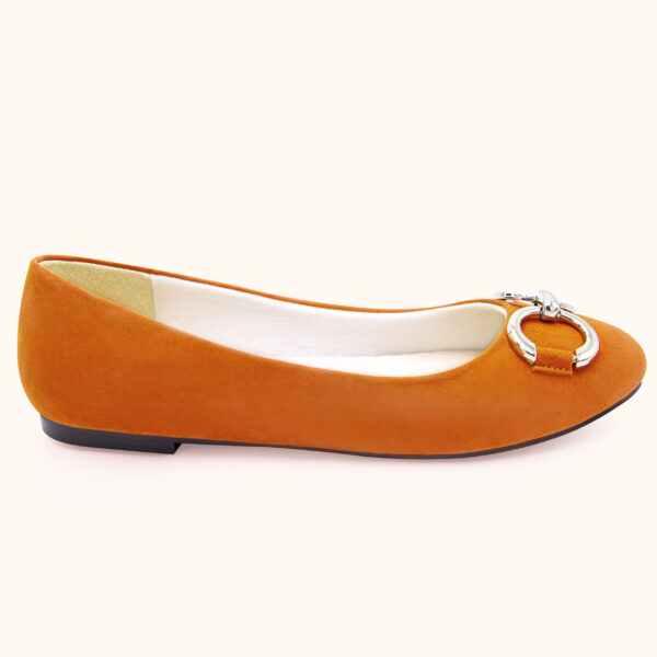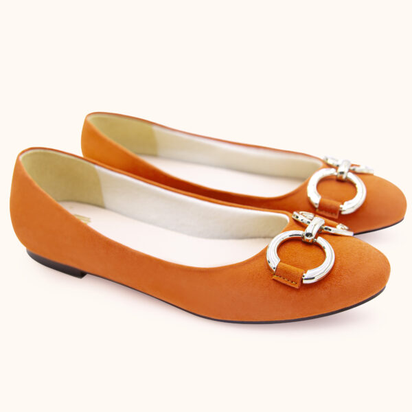 GIÀY BÚP BÊ MŨI TRÒN KHÓA TRANG TRÍ DA BÒ Ý – BST ELENOIR -D CAO CẤP CỦA DOLLY MÃ 88005 MÀU ĐỎ CAM ORANGE