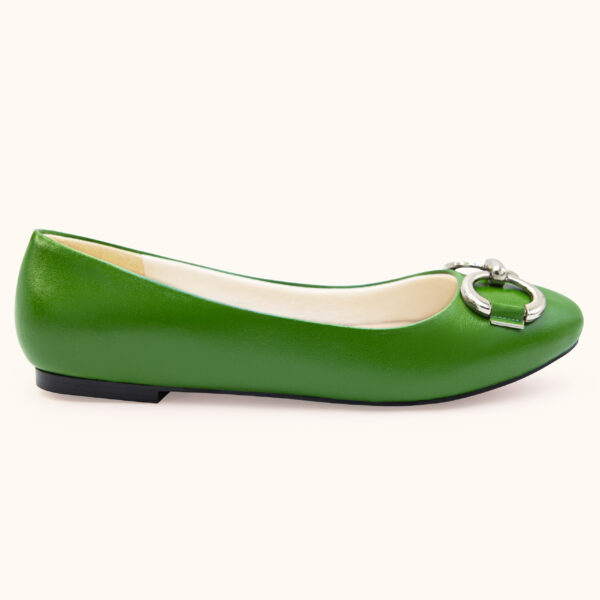 GIÀY BÚP BÊ MŨI TRÒN KHÓA TRANG TRÍ DA BÒ Ý – BST ELENOIR -D CAO CẤP CỦA DOLLY MÃ 88005 MÀU XANH LÁ GREEN