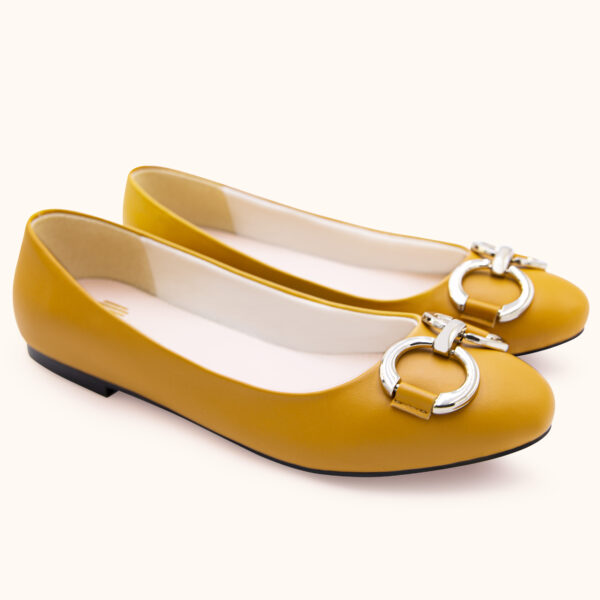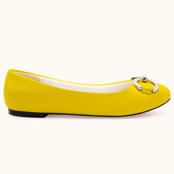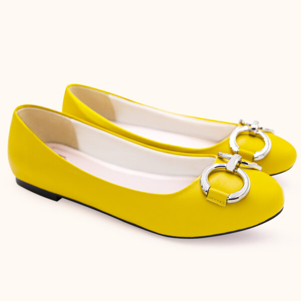 GIÀY BÚP BÊ BỆT MŨI NHỌN ĐÍNH NƠ – BST ELENOIR-D CỦA DOLLY MÃ 88007 MÀU YELLOW DA BÒ Ý THẬT CAO CẤP