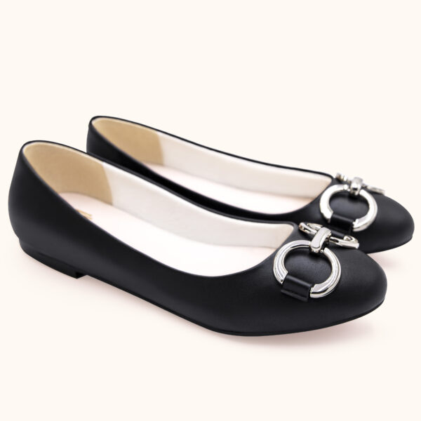 GIÀY BÚP BÊ MŨI TRÒN KHÓA TRANG TRÍ DA BÒ Ý – BST ELENOIR -D CAO CẤP CỦA DOLLY MÃ 88005 MÀU ĐEN LÌ BLACK MATTE