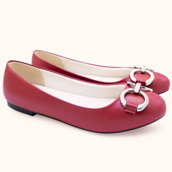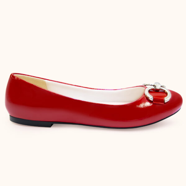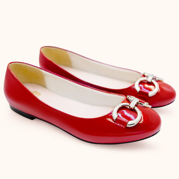 GIÀY BÚP BÊ MŨI TRÒN KHÓA TRANG TRÍ DA BÒ Ý – BST ELENOIR -D CAO CẤP CỦA DOLLY MÃ 88005 MÀU ĐỎ BÓNG RED GLOSSY