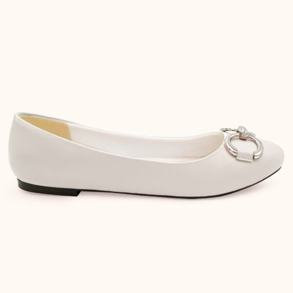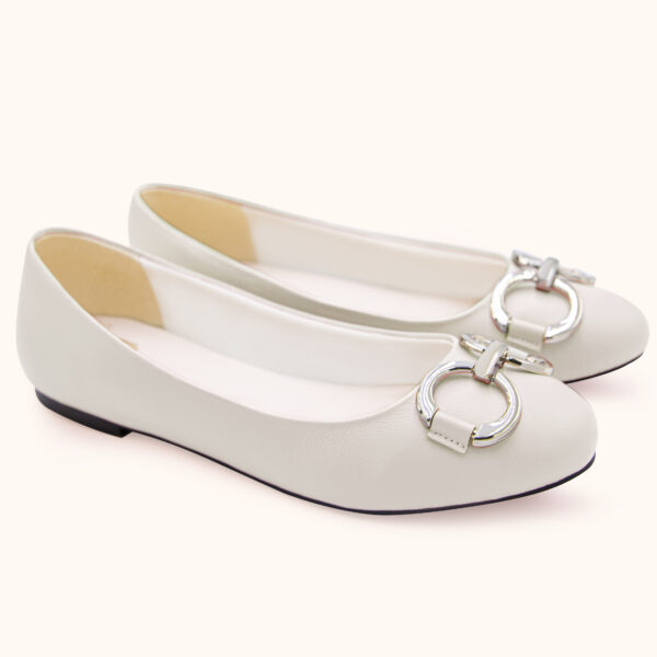 GIÀY BÚP BÊ BỆT MŨI NHỌN ĐÍNH NƠ – BST ELENOIR-D CỦA DOLLY MÃ 88007 MÀU WHITE DA BÒ Ý THẬT CAO CẤP