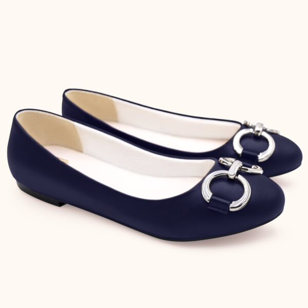 GIÀY BÚP BÊ MŨI TRÒN KHÓA TRANG TRÍ DA BÒ Ý – BST ELENOIR -D CAO CẤP CỦA DOLLY MÃ 88005 MÀU XANH ĐEN DARK BLUE
