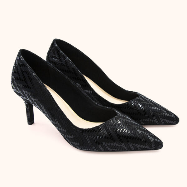Giày mũi nhọn canvas đen của Ý cao 6.5cm