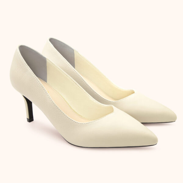 Cao gót 5,5cm mũi nhọn cổ tim da Ý