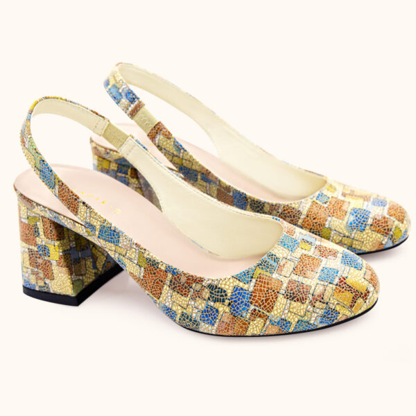 Chunky bít mũi tròn hở gót da hoa văn Ý