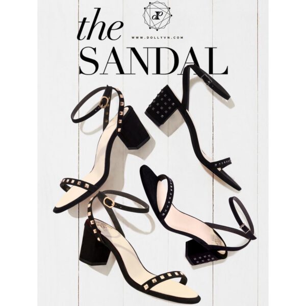 Giày Dolly sandal 5cm 1bản đinh tán chóp vuông khóa cài