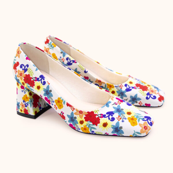 GIÀY CHUNKY 6CM MŨI VUÔNG HOA VĂN FLORAL CAO CẤP