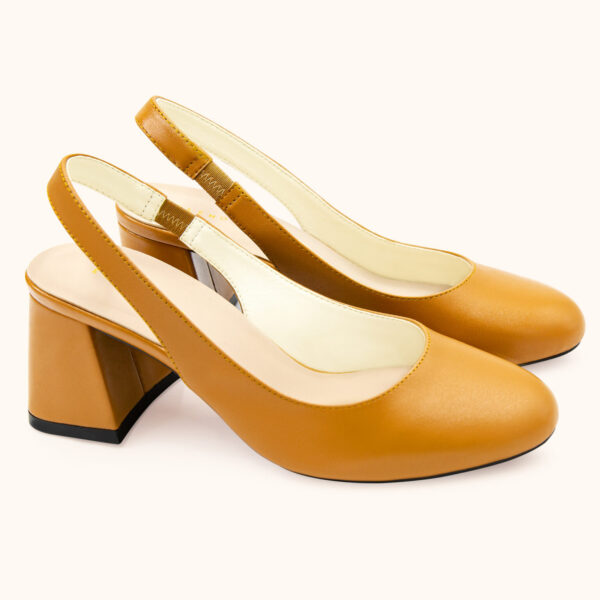 Giày da Ý 6cm block heels bít mũi tròn dây quai hậu