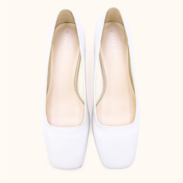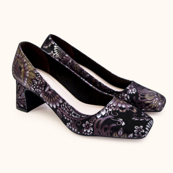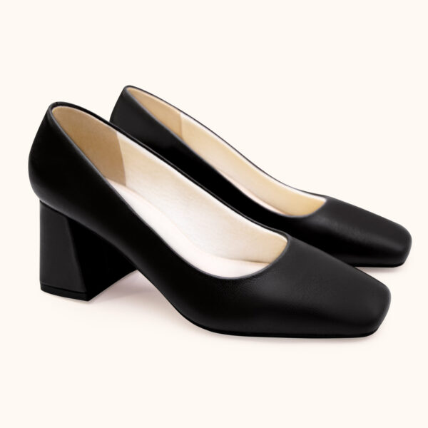 Giày Gót vuông 5cm Mũi Vuông Cổ Xéo Da Ý – Block Heel