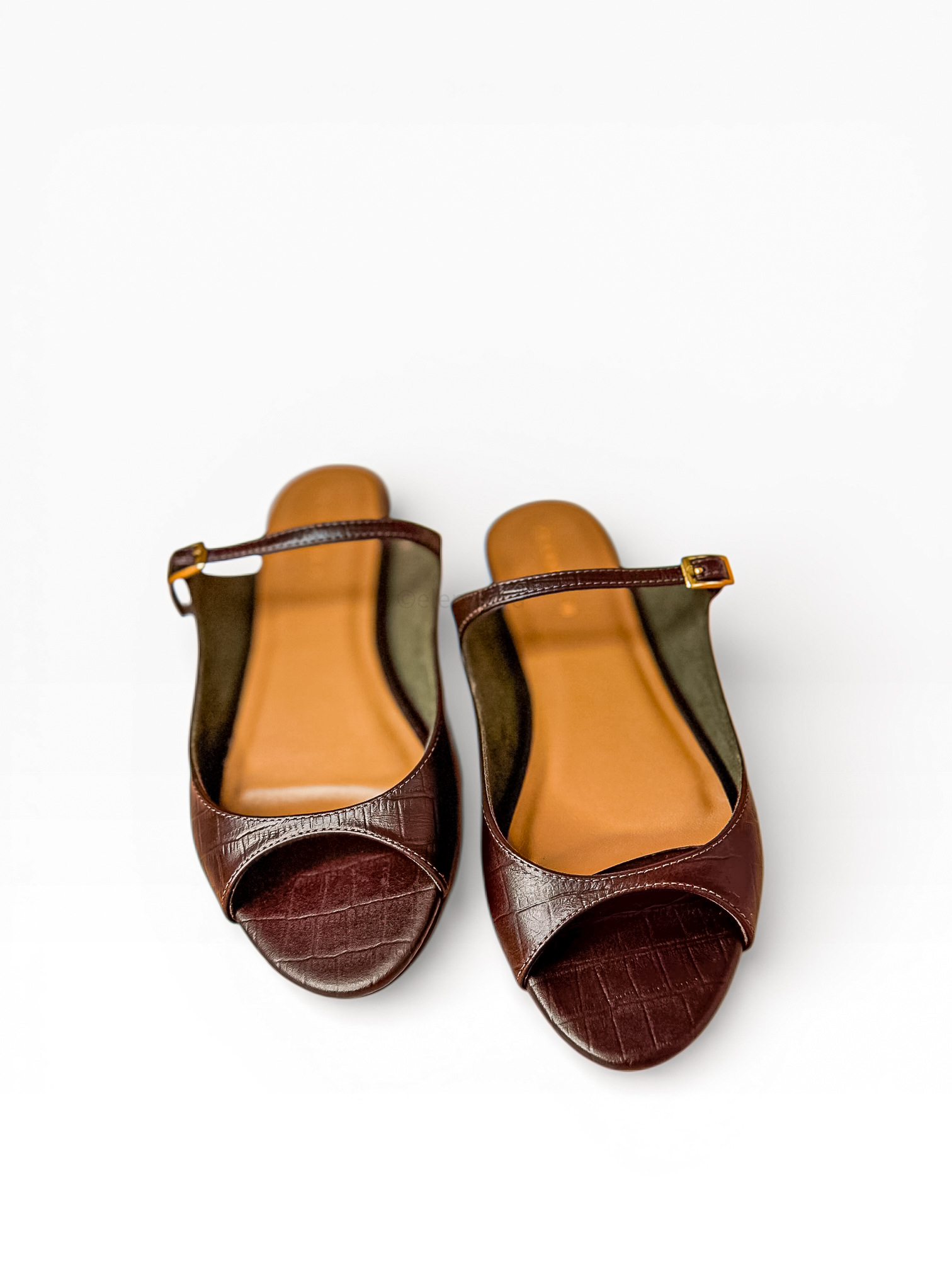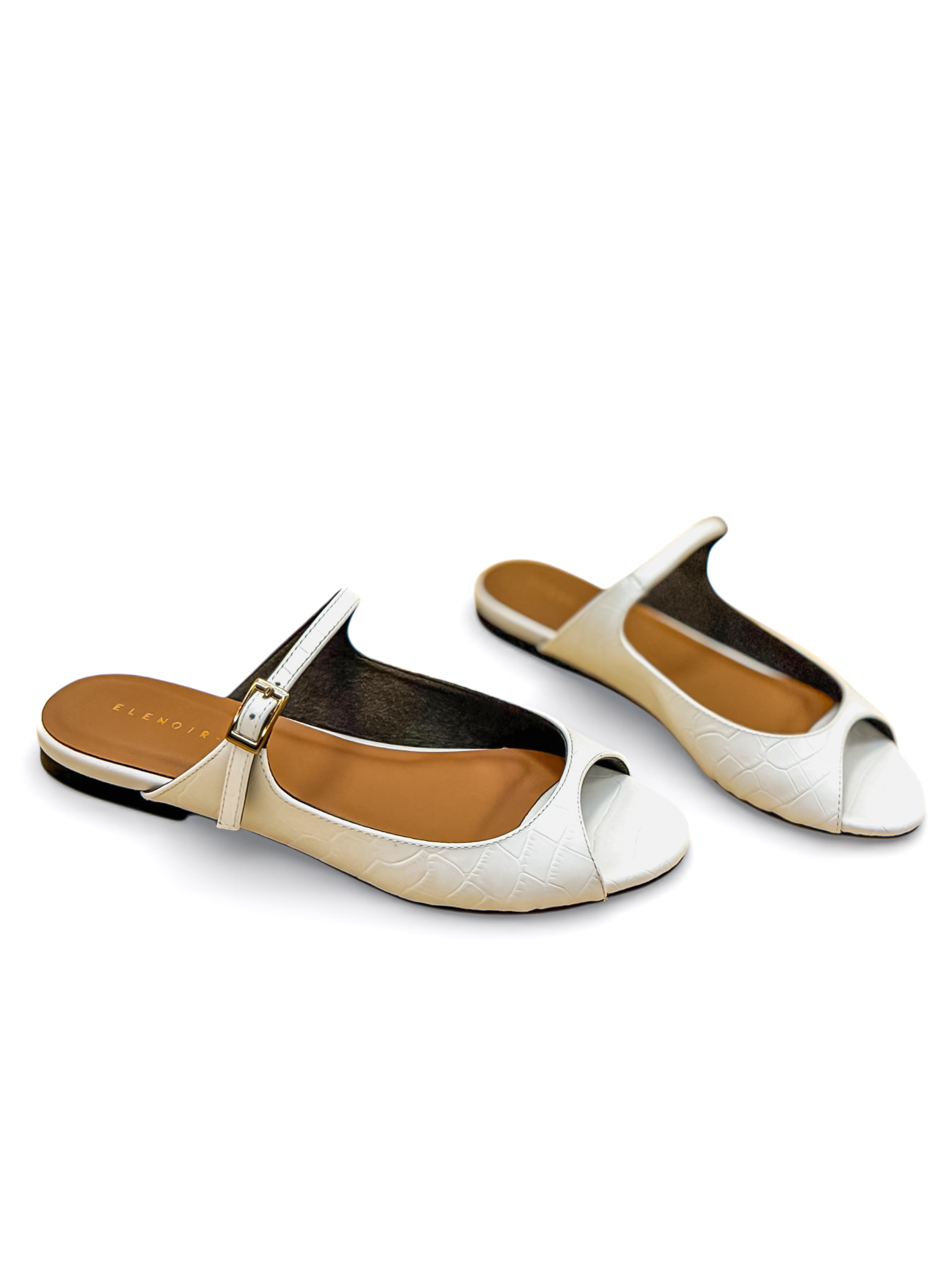 Dép hở mũi quai ngang khóa trang trí da Ý