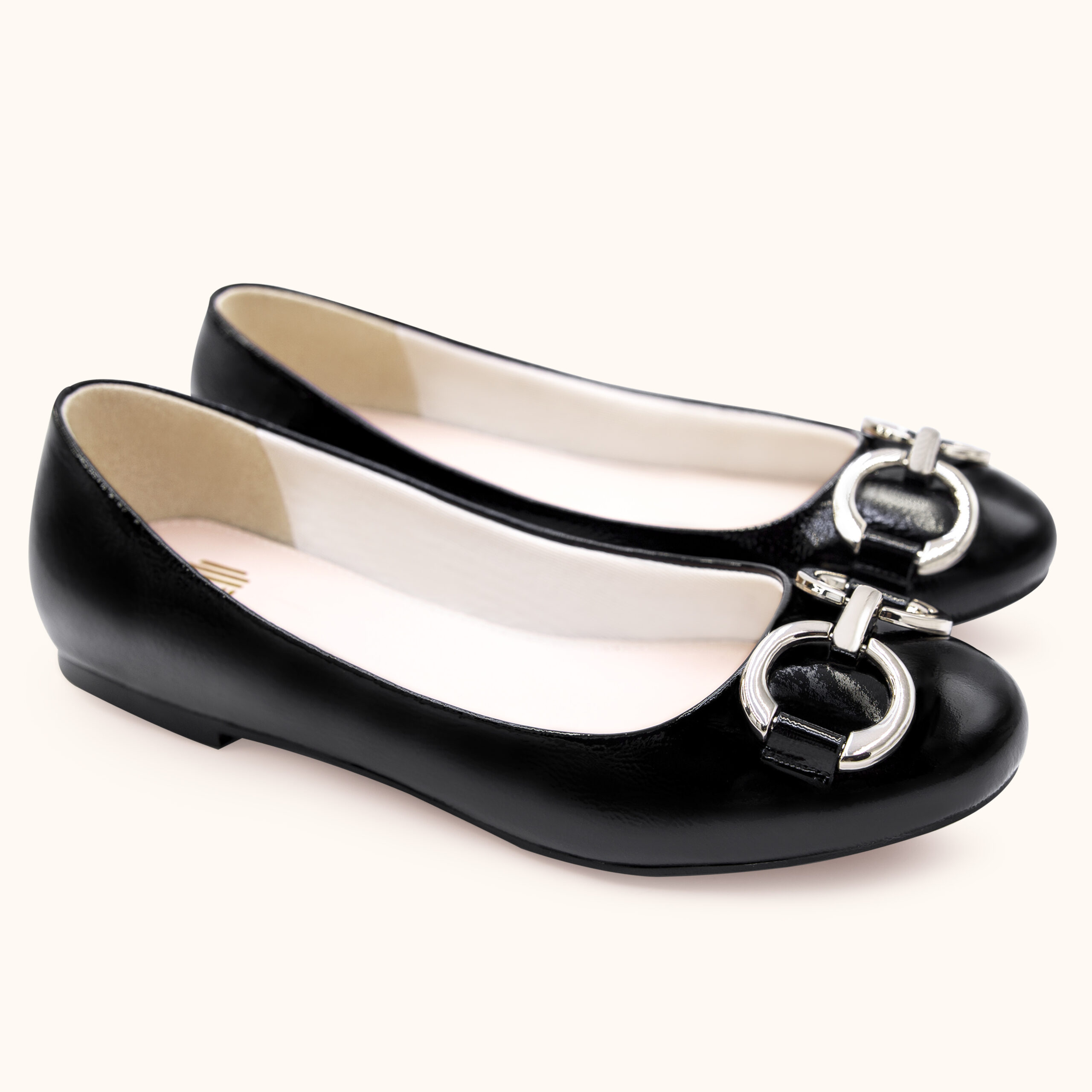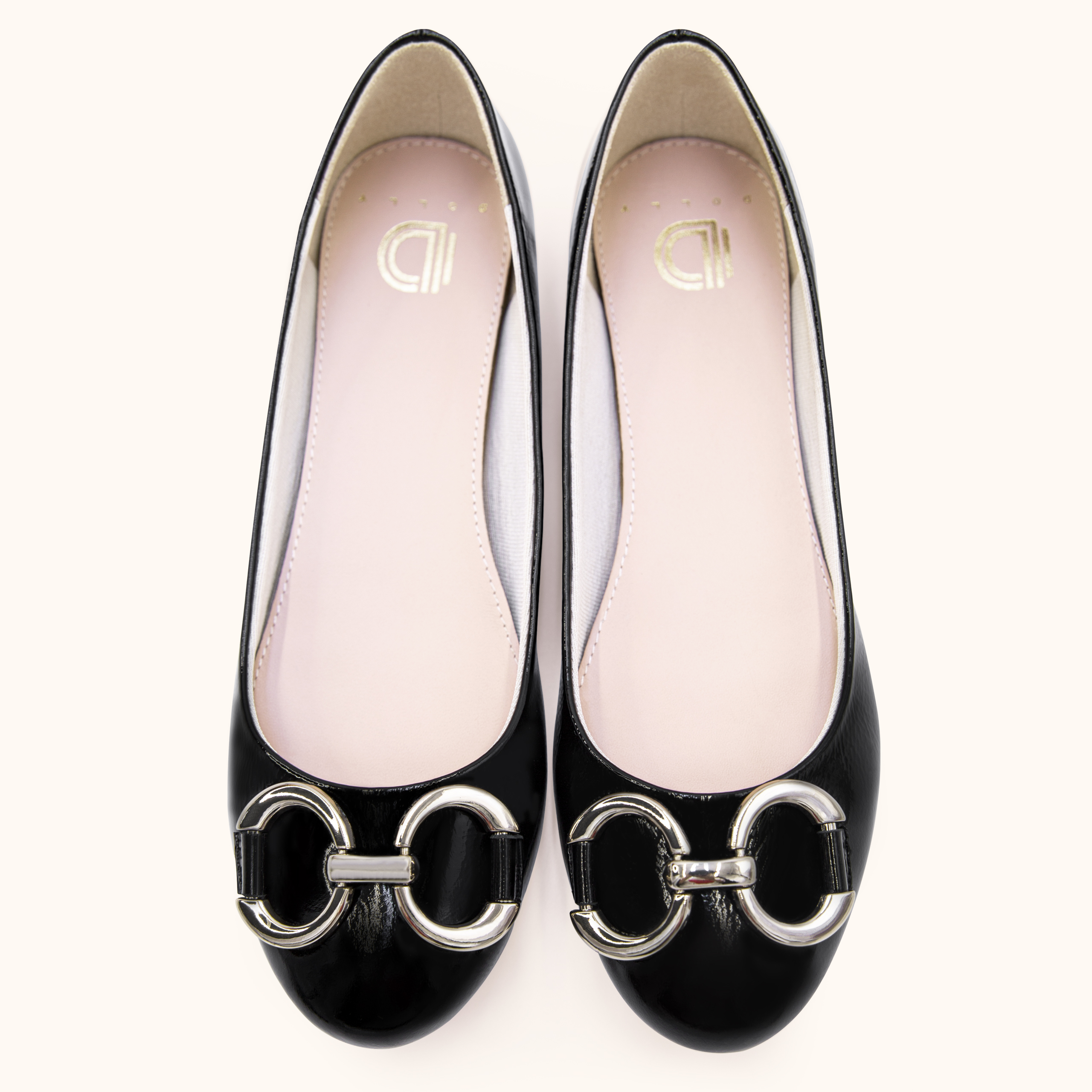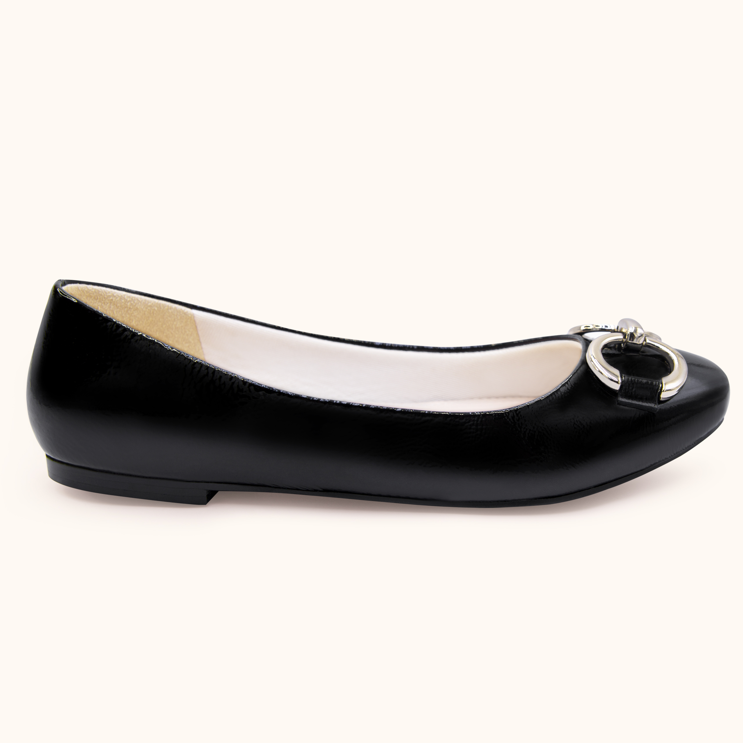 GIÀY BÚP BÊ MŨI TRÒN KHÓA TRANG TRÍ DA BÒ Ý – BST ELENOIR -D CAO CẤP CỦA DOLLY MÃ 88005 MÀU ĐEN BÓNG BLACK GLOSSY