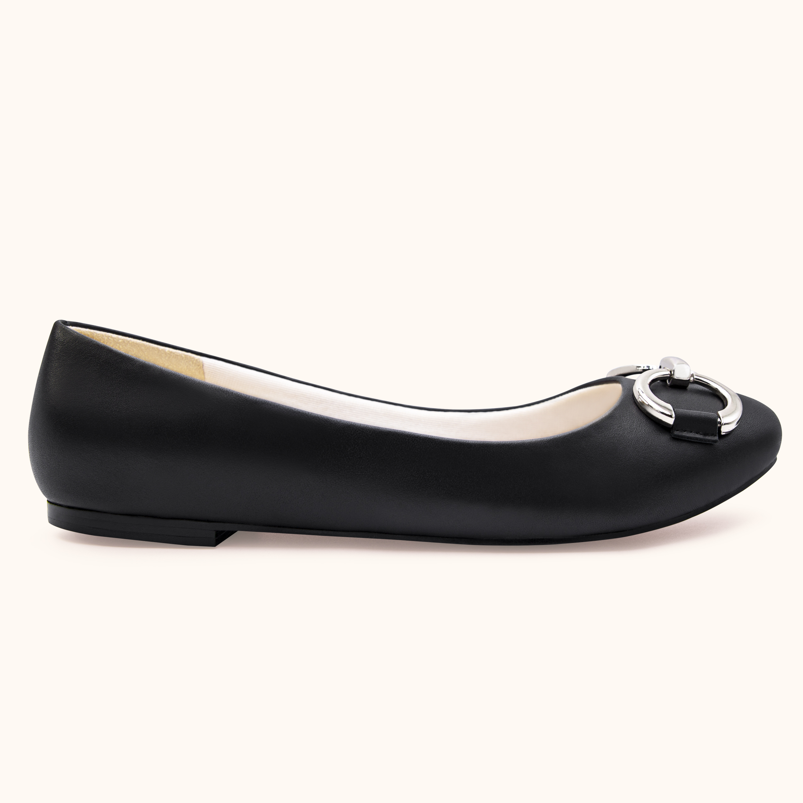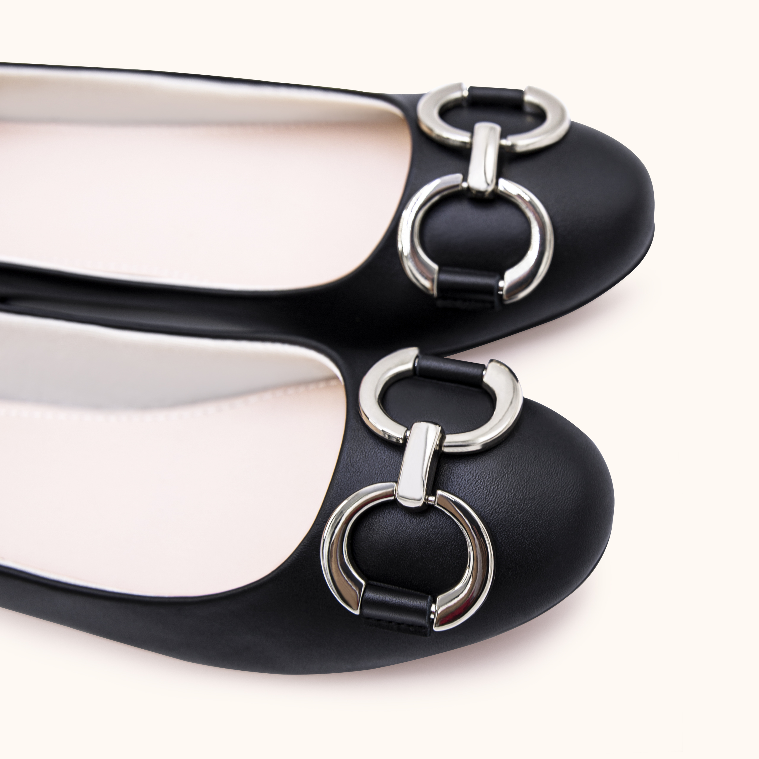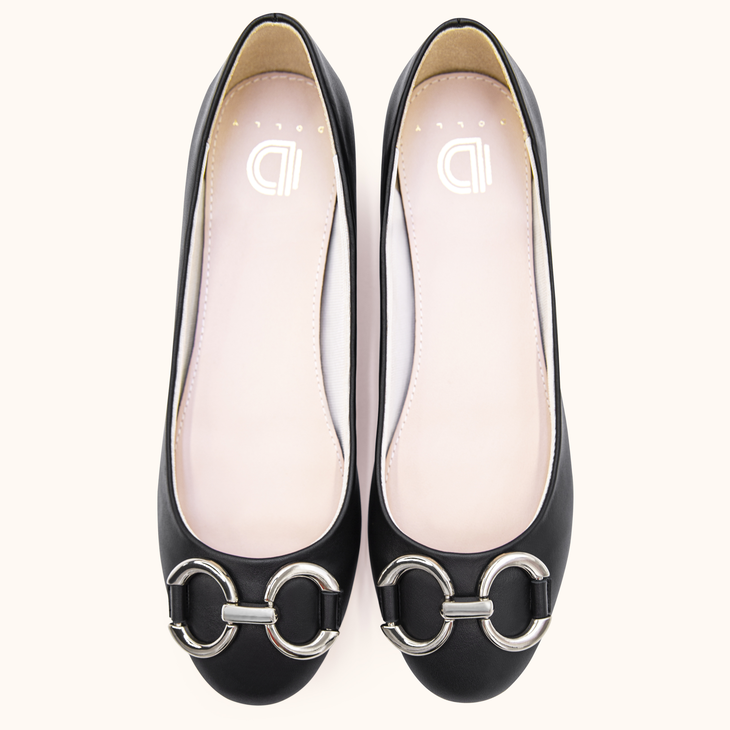 GIÀY BÚP BÊ MŨI TRÒN KHÓA TRANG TRÍ DA BÒ Ý – BST ELENOIR -D CAO CẤP CỦA DOLLY MÃ 88005 MÀU ĐEN LÌ BLACK MATTE