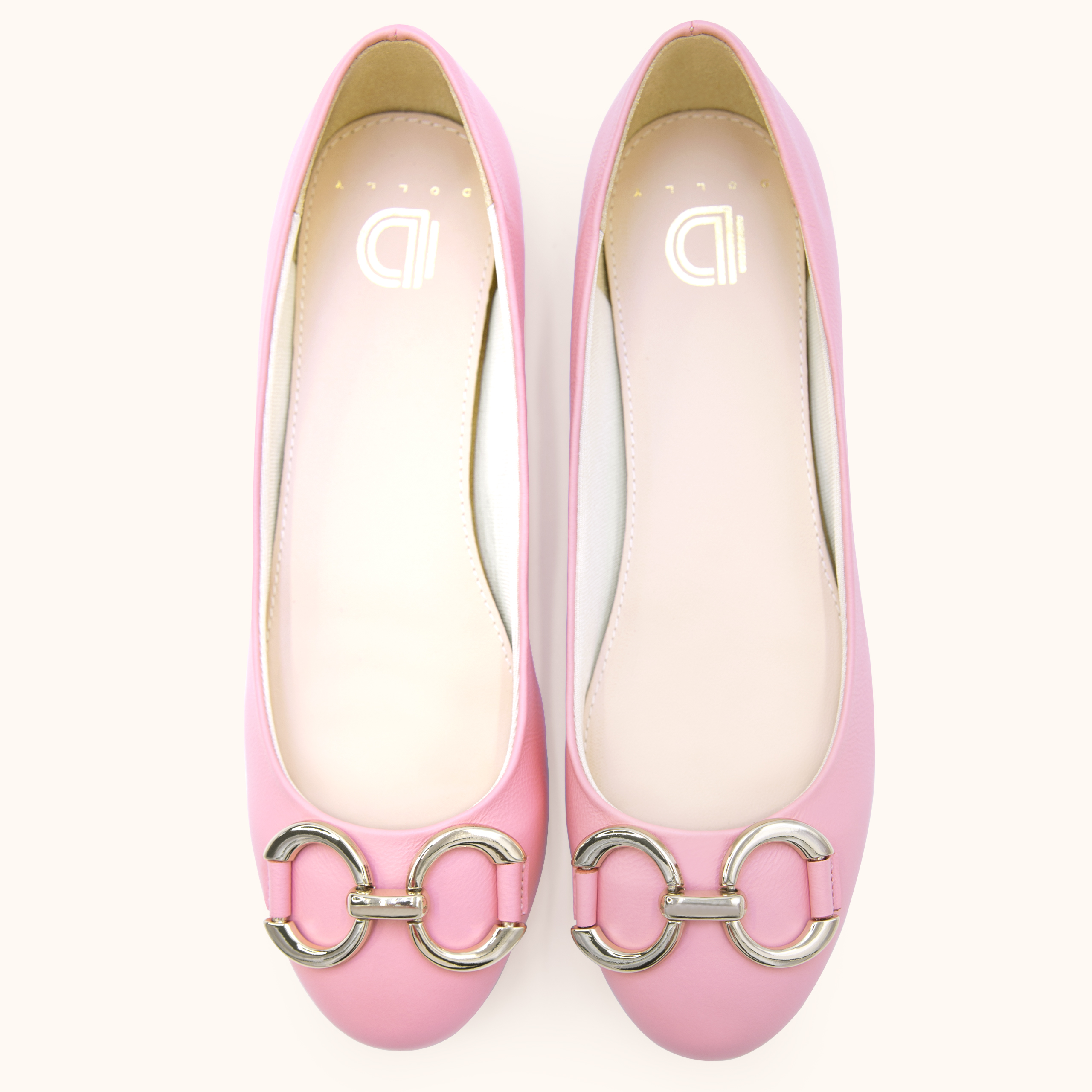 GIÀY BÚP BÊ MŨI TRÒN KHÓA TRANG TRÍ DA BÒ Ý – BST ELENOIR -D CAO CẤP CỦA DOLLY MÃ 88005 MÀU HỒNG PHẤN NUDE
