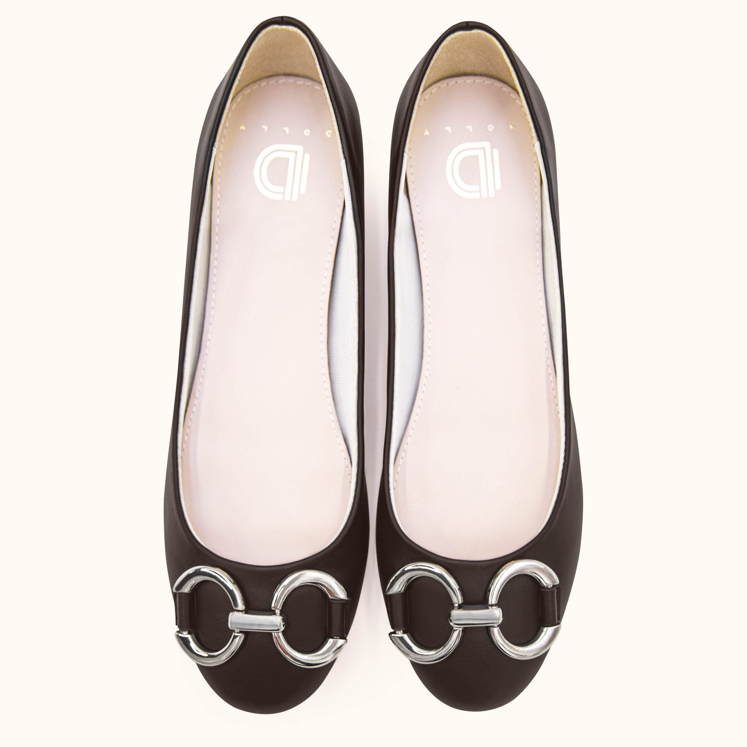 – Kiểu dáng: Giày Búp Bê Đế Bệt Mũi Tròn Khóa Tròn Trang Trí