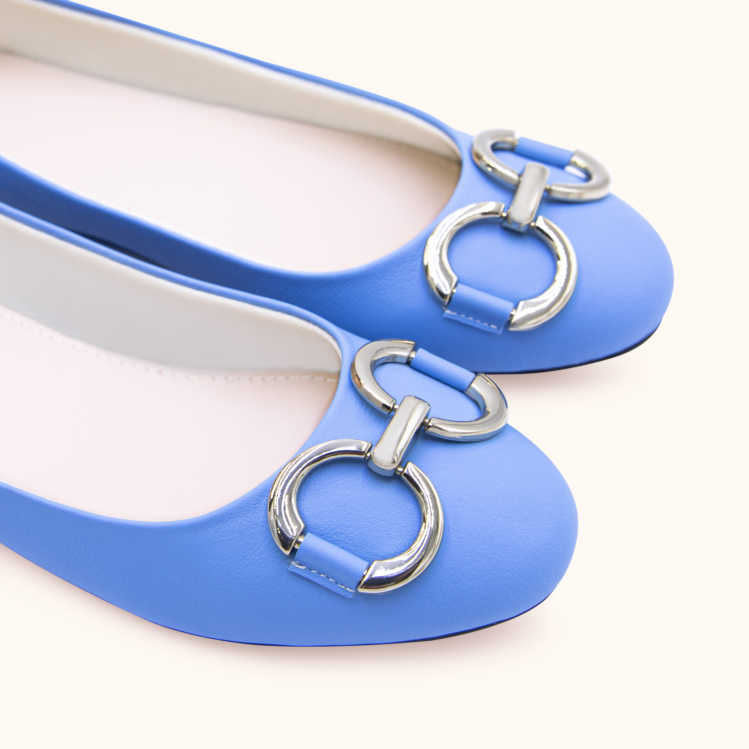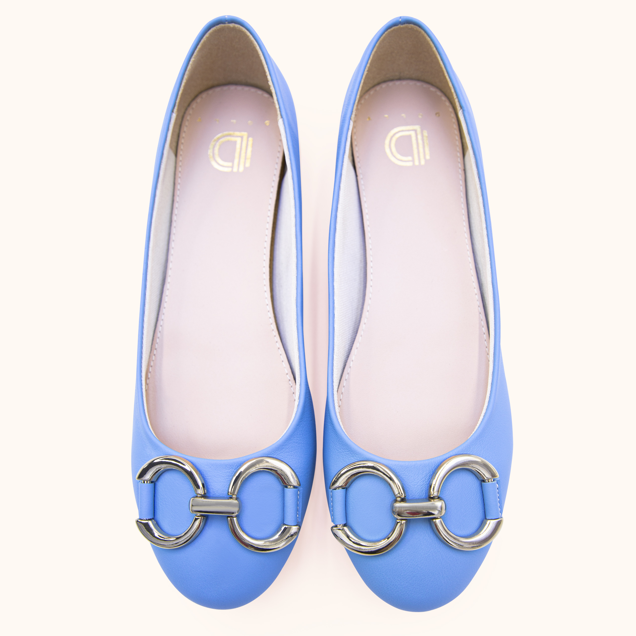 GIÀY BÚP BÊ MŨI TRÒN KHÓA TRANG TRÍ DA BÒ Ý – BST ELENOIR -D CAO CẤP CỦA DOLLY MÃ 88005 MÀU XANH DƯƠNG BLUE
