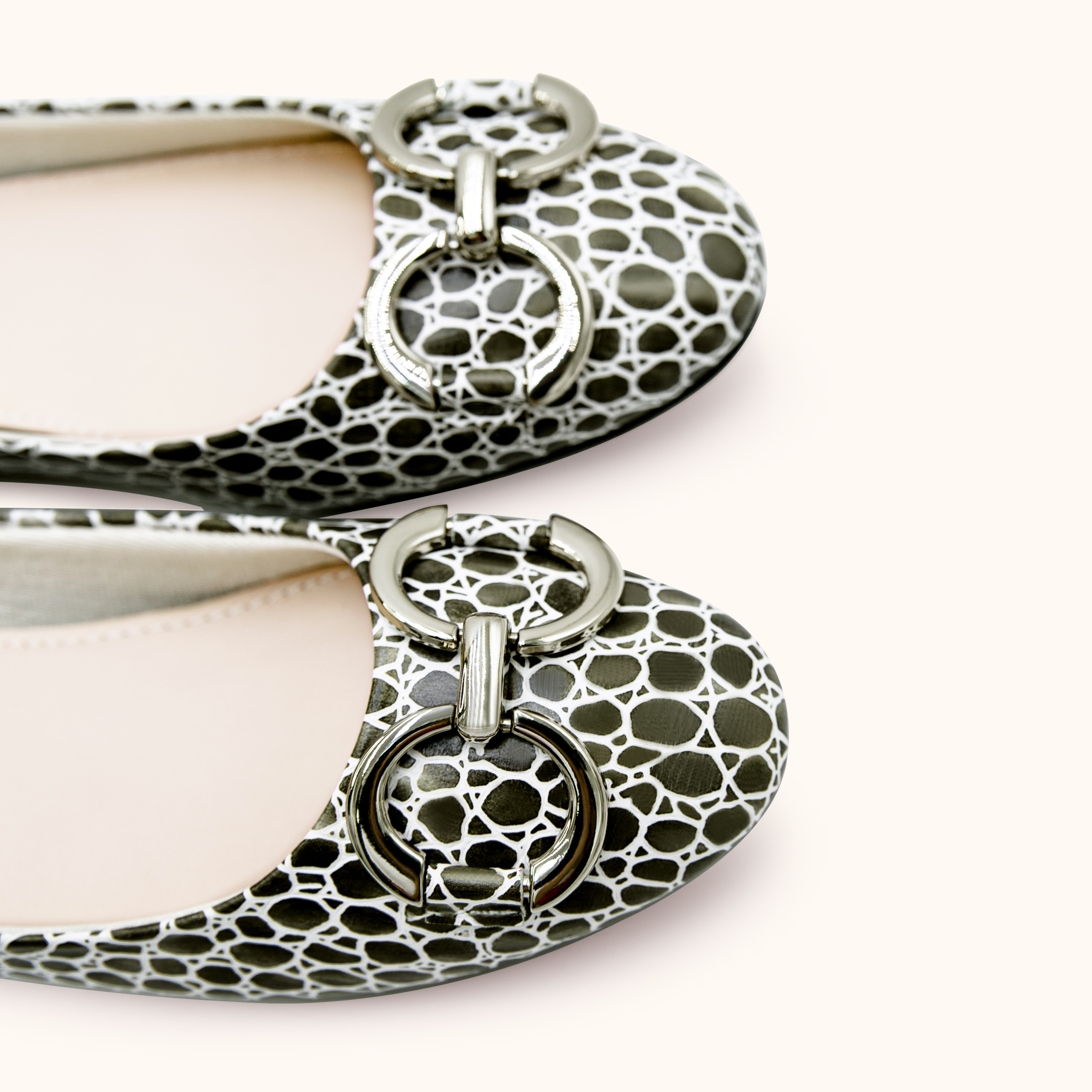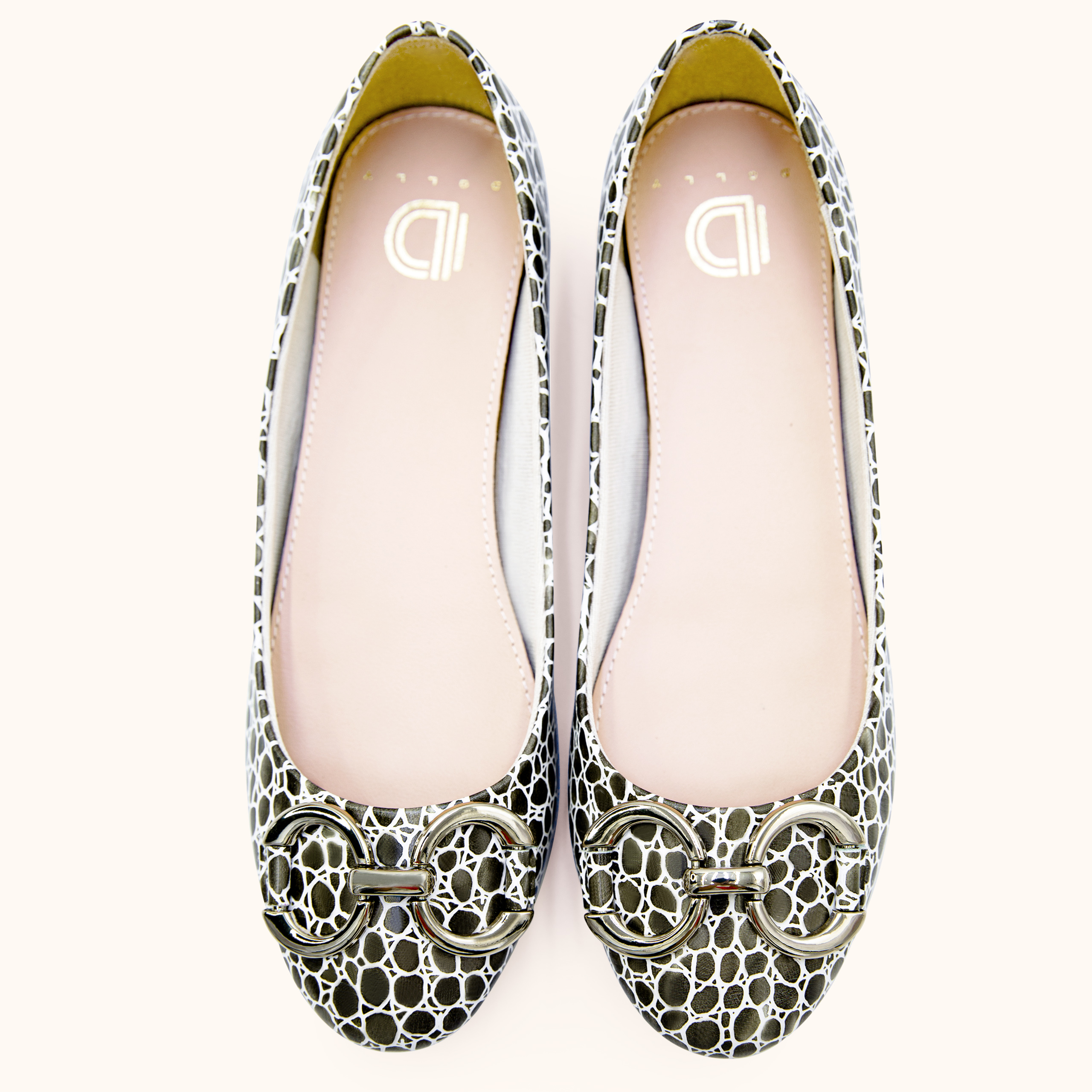 GIÀY BÚP BÊ MŨI TRÒN KHÓA TRANG TRÍ DA BÒ Ý DẬP VÂN HỌA TIẾT – BST ELENOIR -D CAO CẤP CỦA DOLLY MÃ 88005 MÀU XÁM GRAY