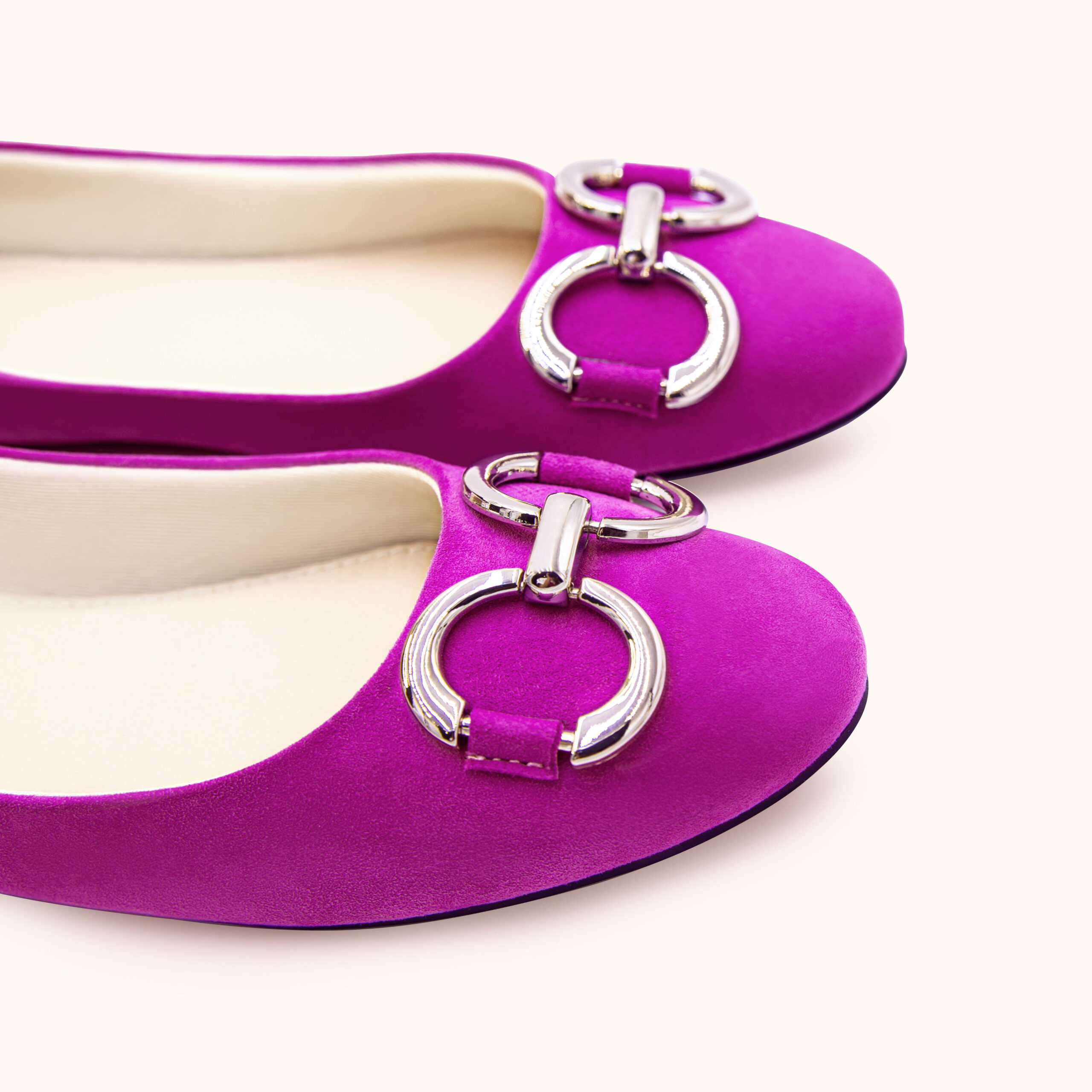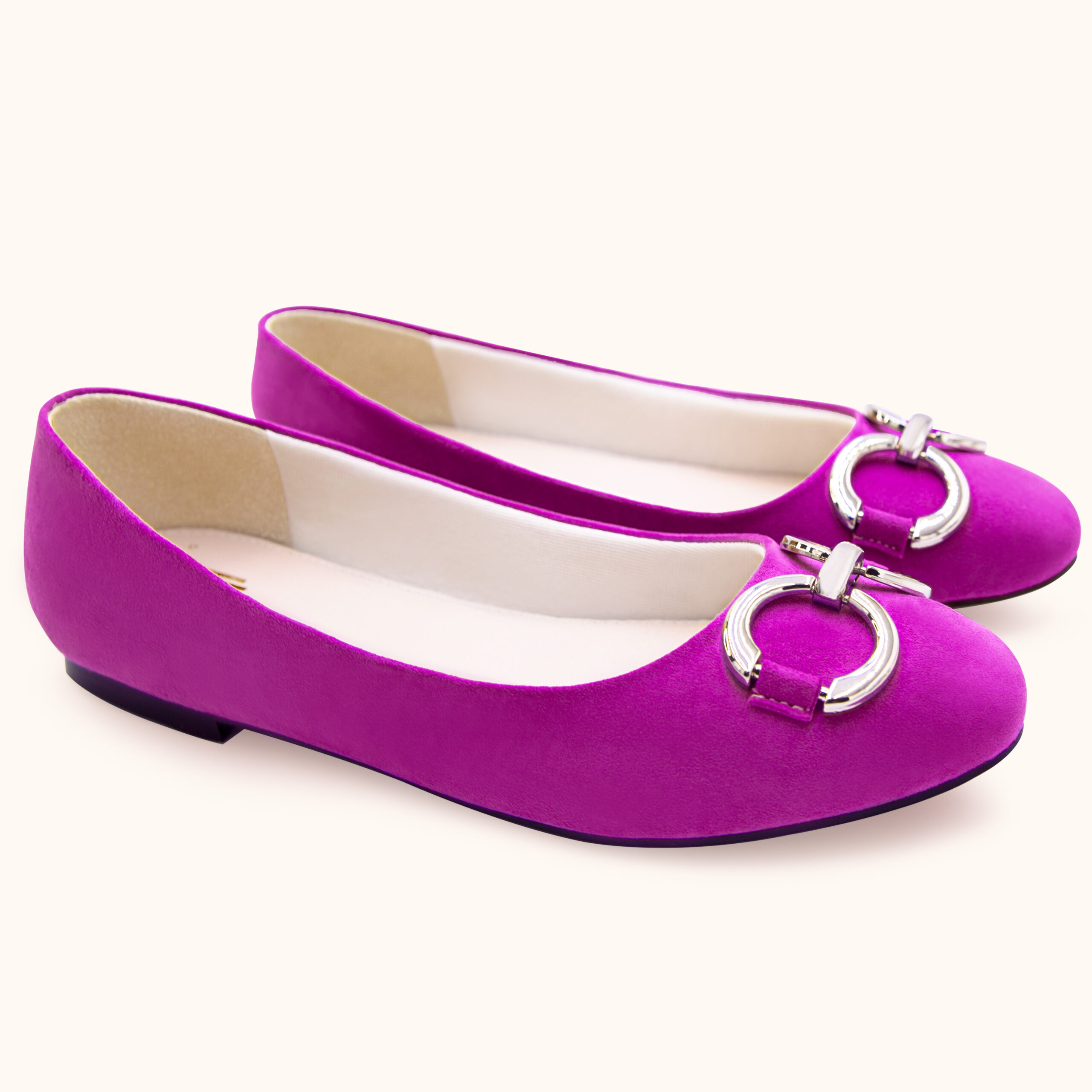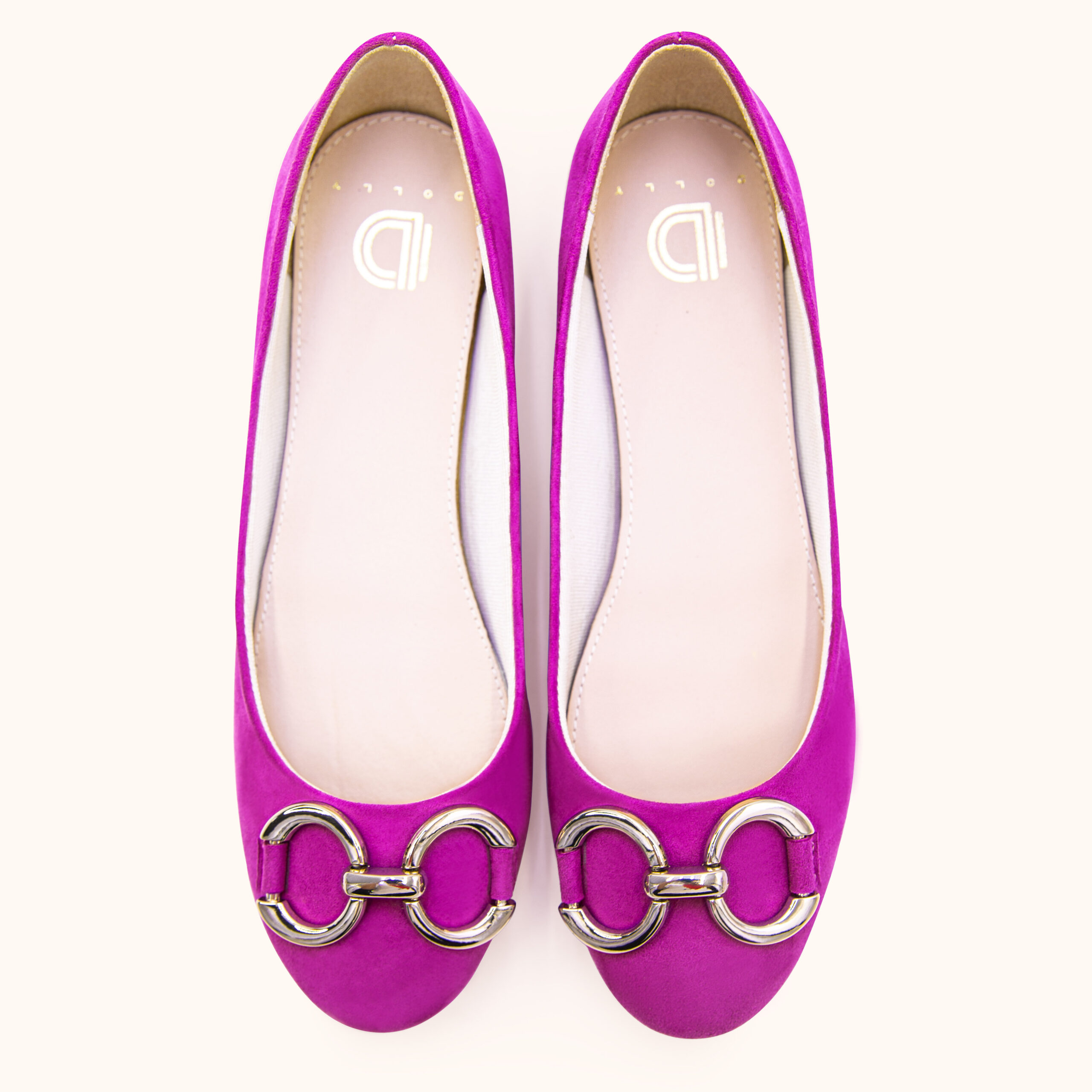88006_MAGENTA | Da Lộn Thật | Dệt Kim | Cao Su | Giày Búp Bê Đế Bệt Mũi Tròn Khóa Tròn Trang Trí |