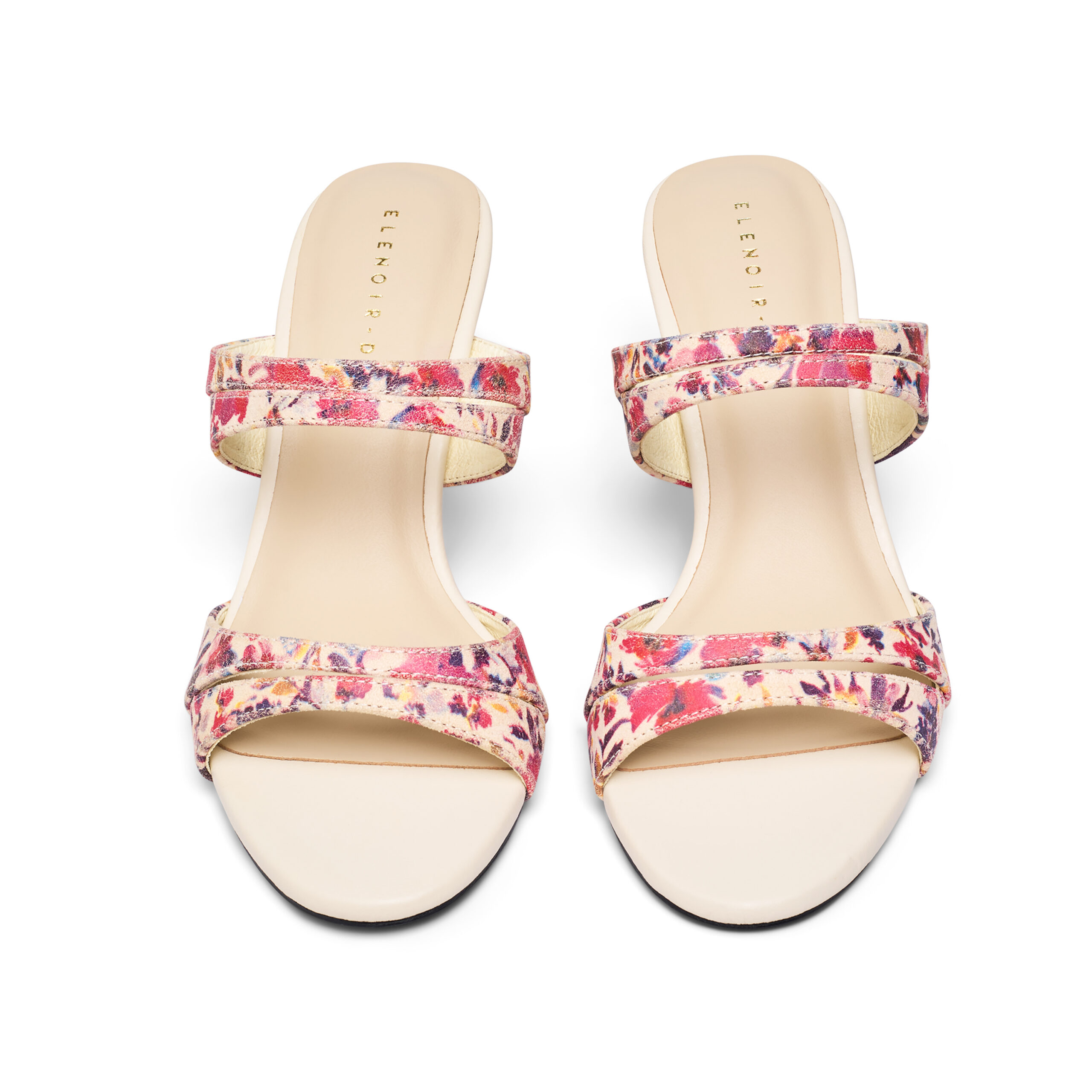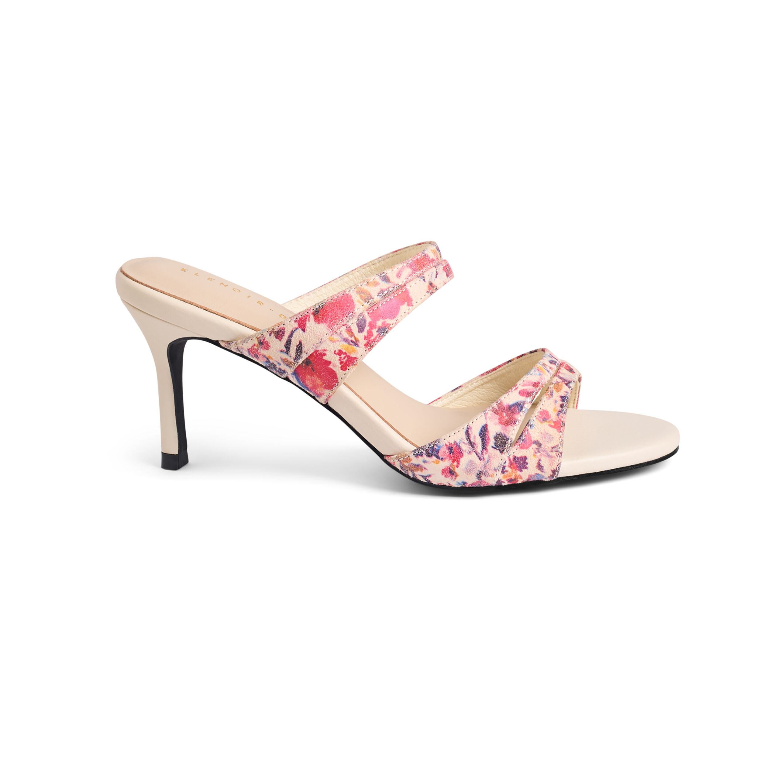 Guốc cao gót 7.8cm 4 dây ngang da Ý họa tiết hoa thế kỷ cao cấp